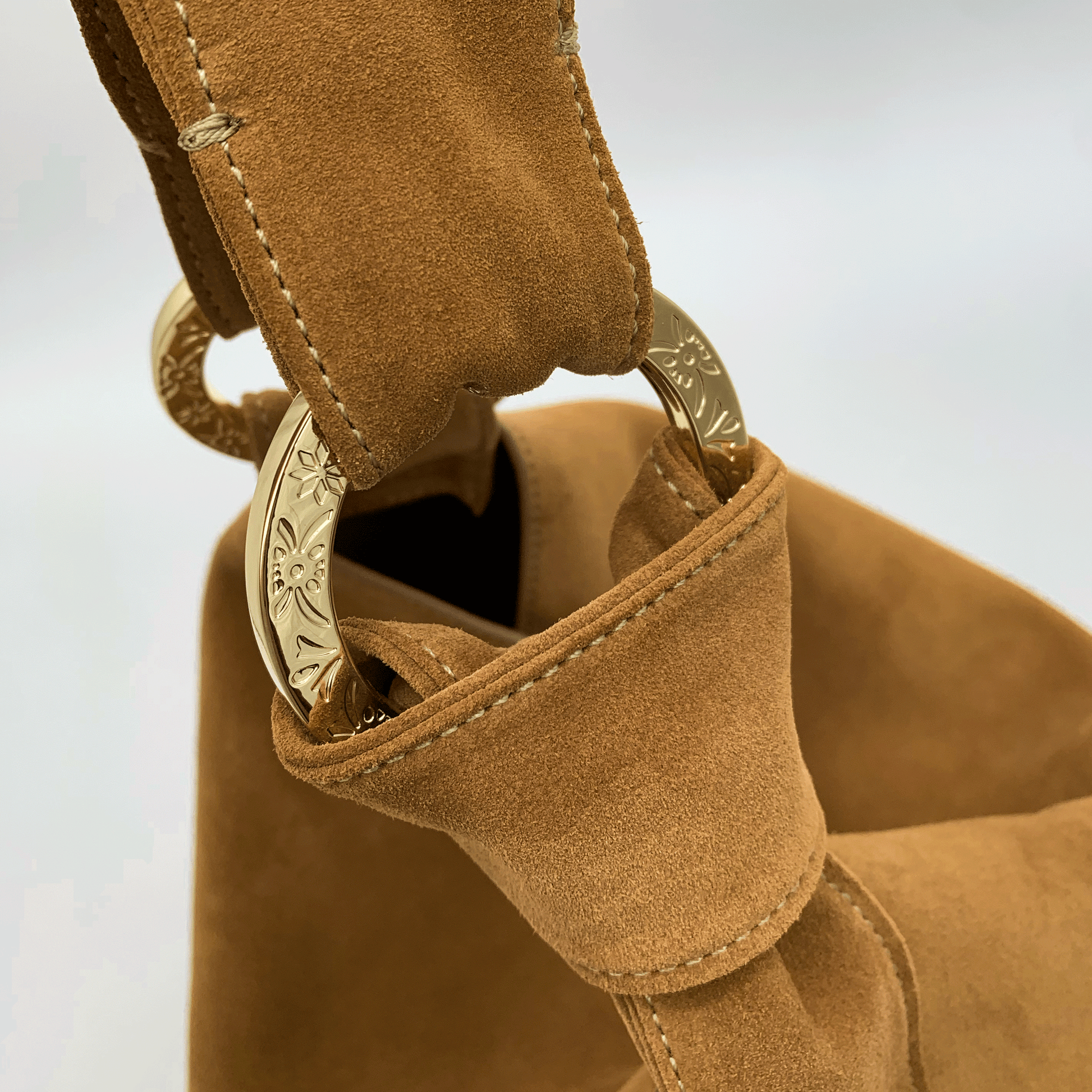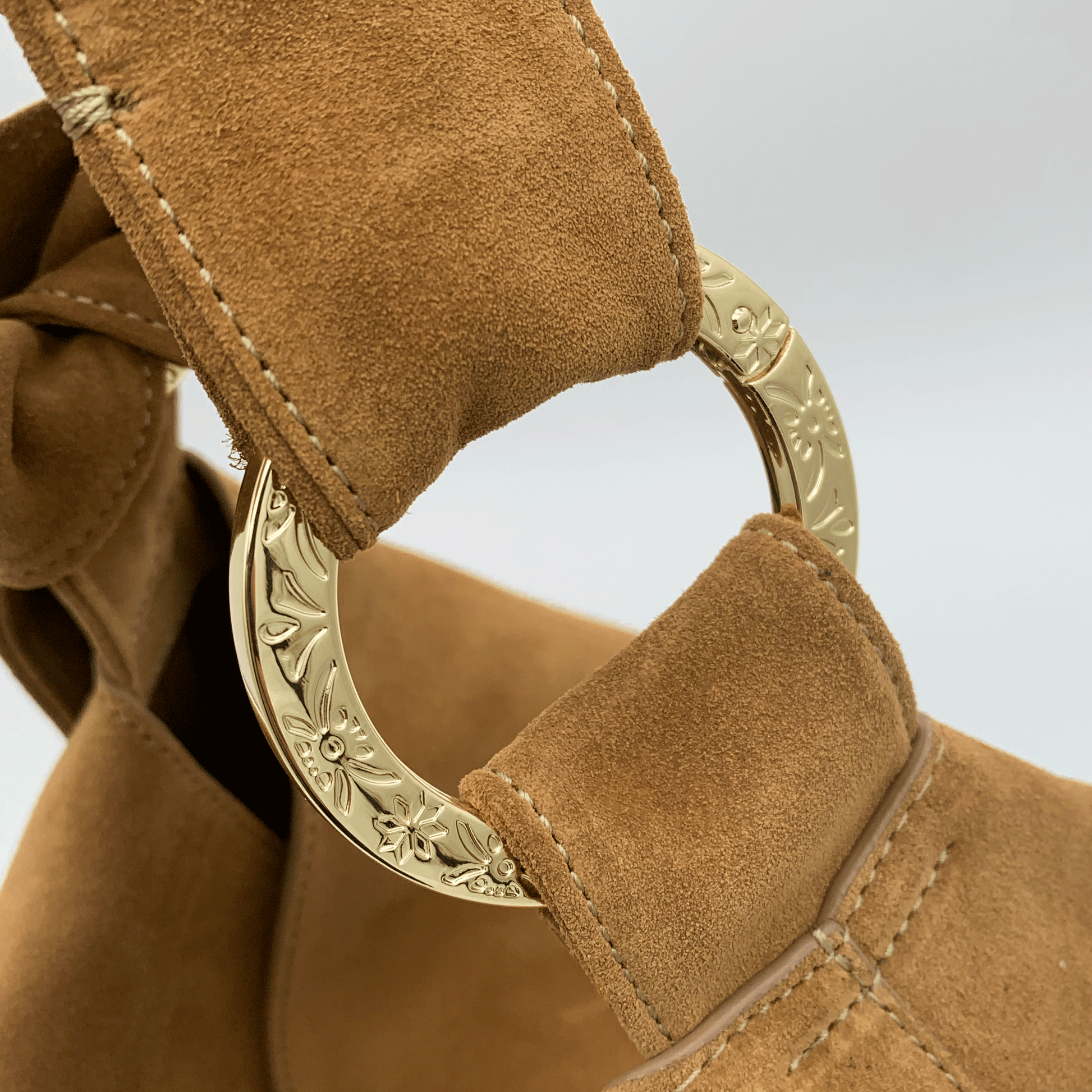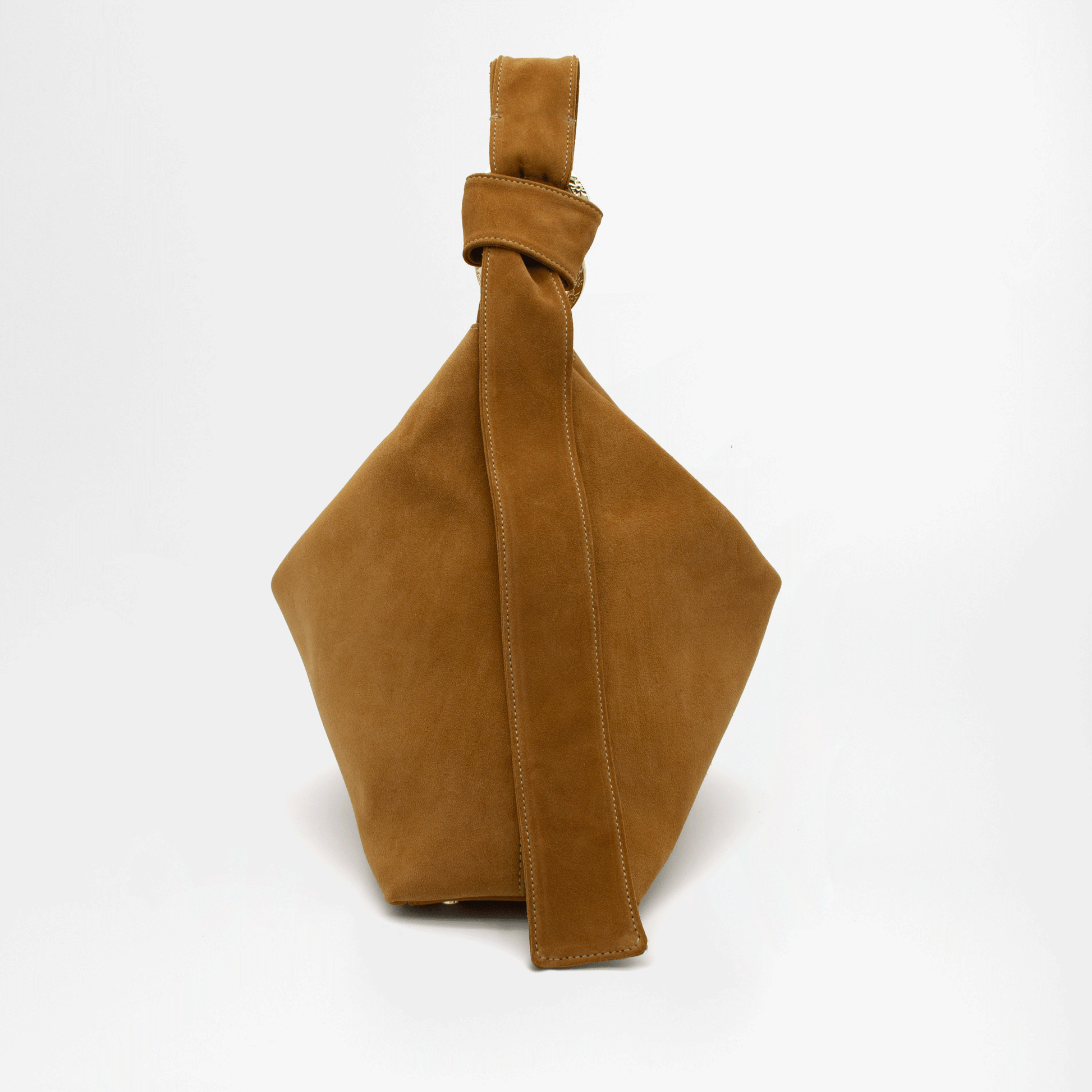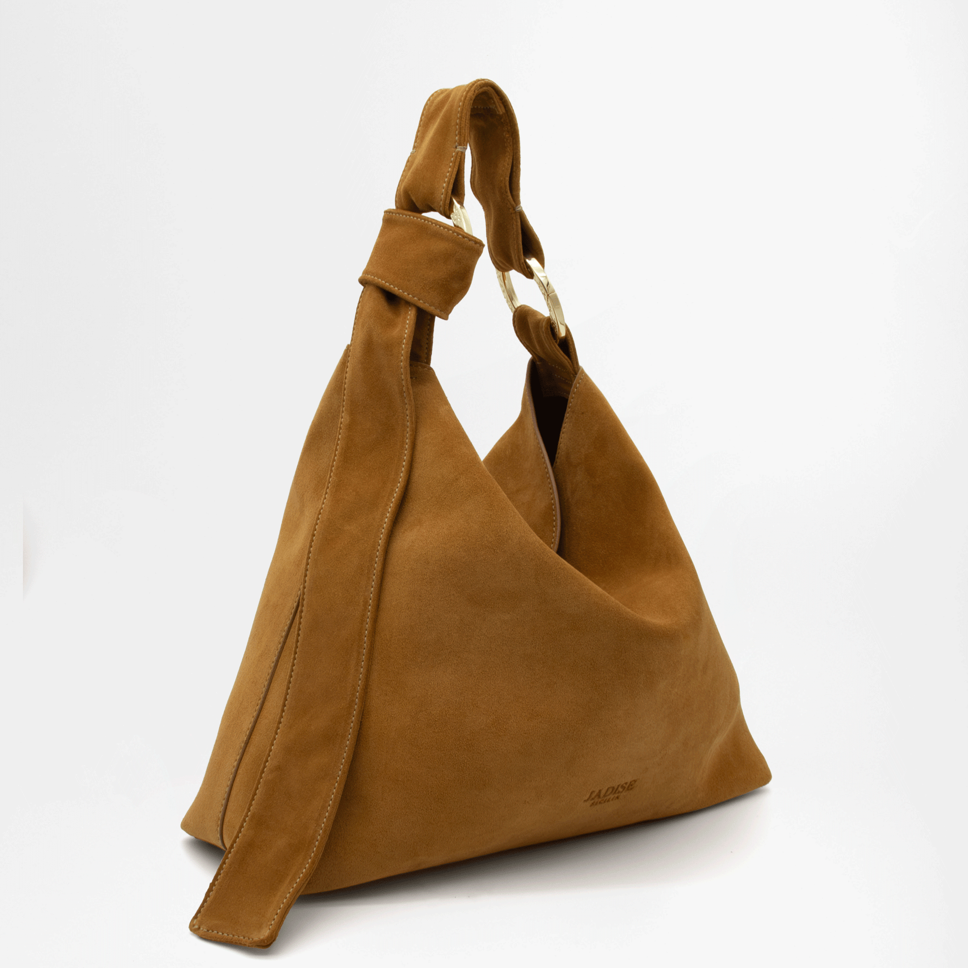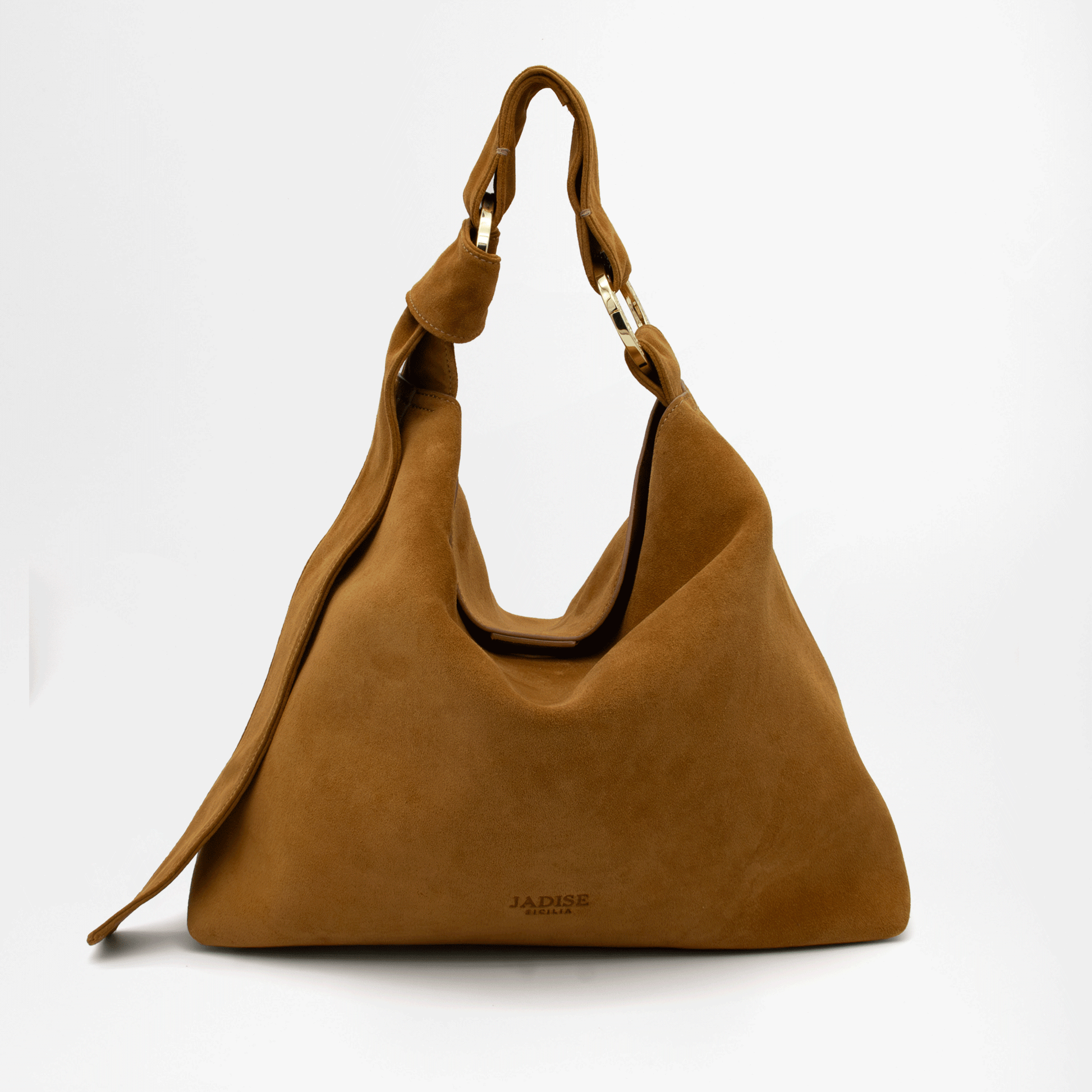 Perfetta per un look casual chic, la borsa BEA unisce praticità e stile con un design morbido e raffinato. Realizzata in pregiata pelle scamosciata, con una superficie vellutata al tatto e una struttura morbida grazie alla lavorazione doppiata, si distingue per il suo originale manico con nodo regolabile, fissato con due grandi moschettoni tondi personalizzati Jadise, decorati con incisioni ispirate ai tradizionali ghirigori siciliani.