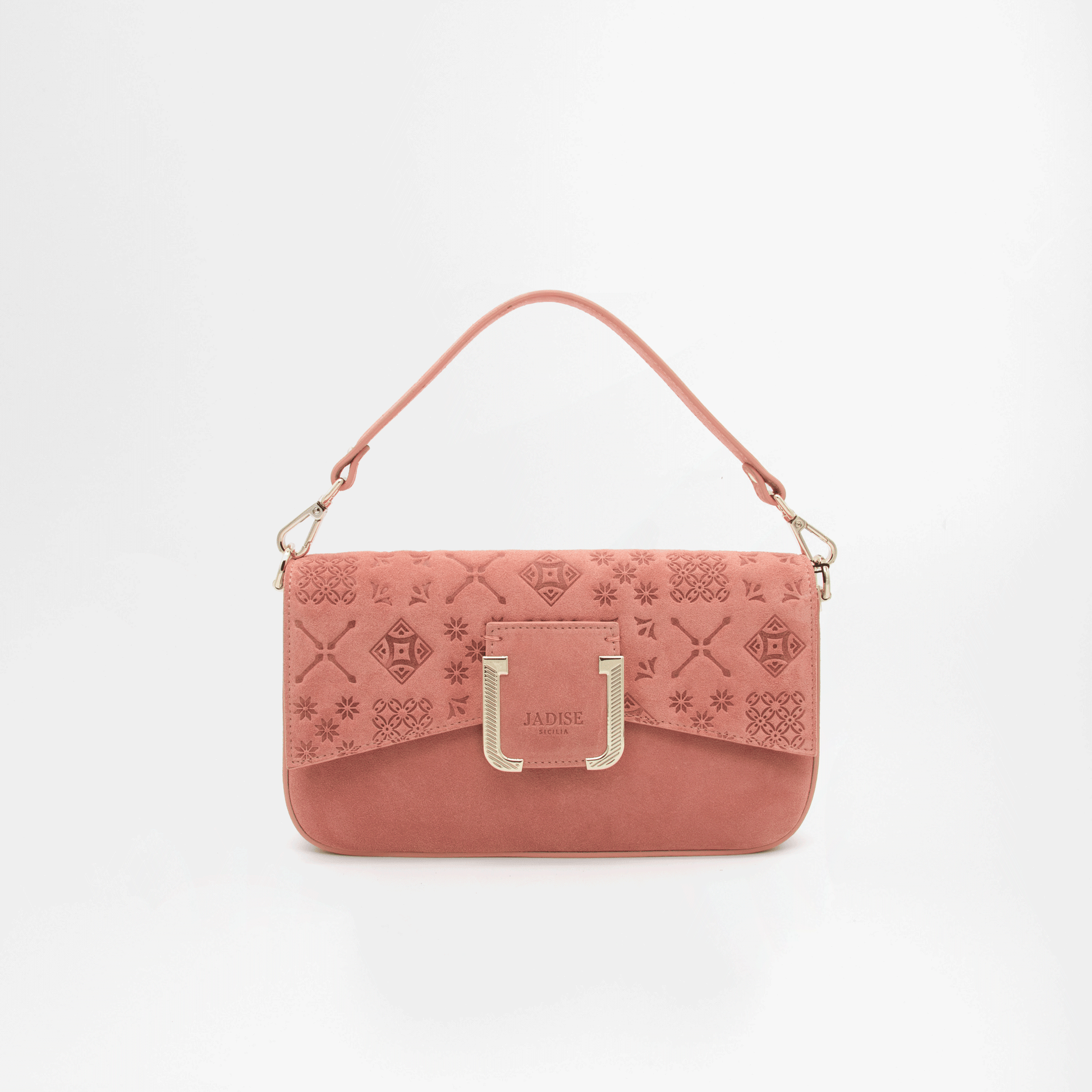 Il design è valorizzato da una pattina con chiusura a calamita, arricchita dall’iconico dettaglio doppia J firmato Jadise, in metallo dorato.