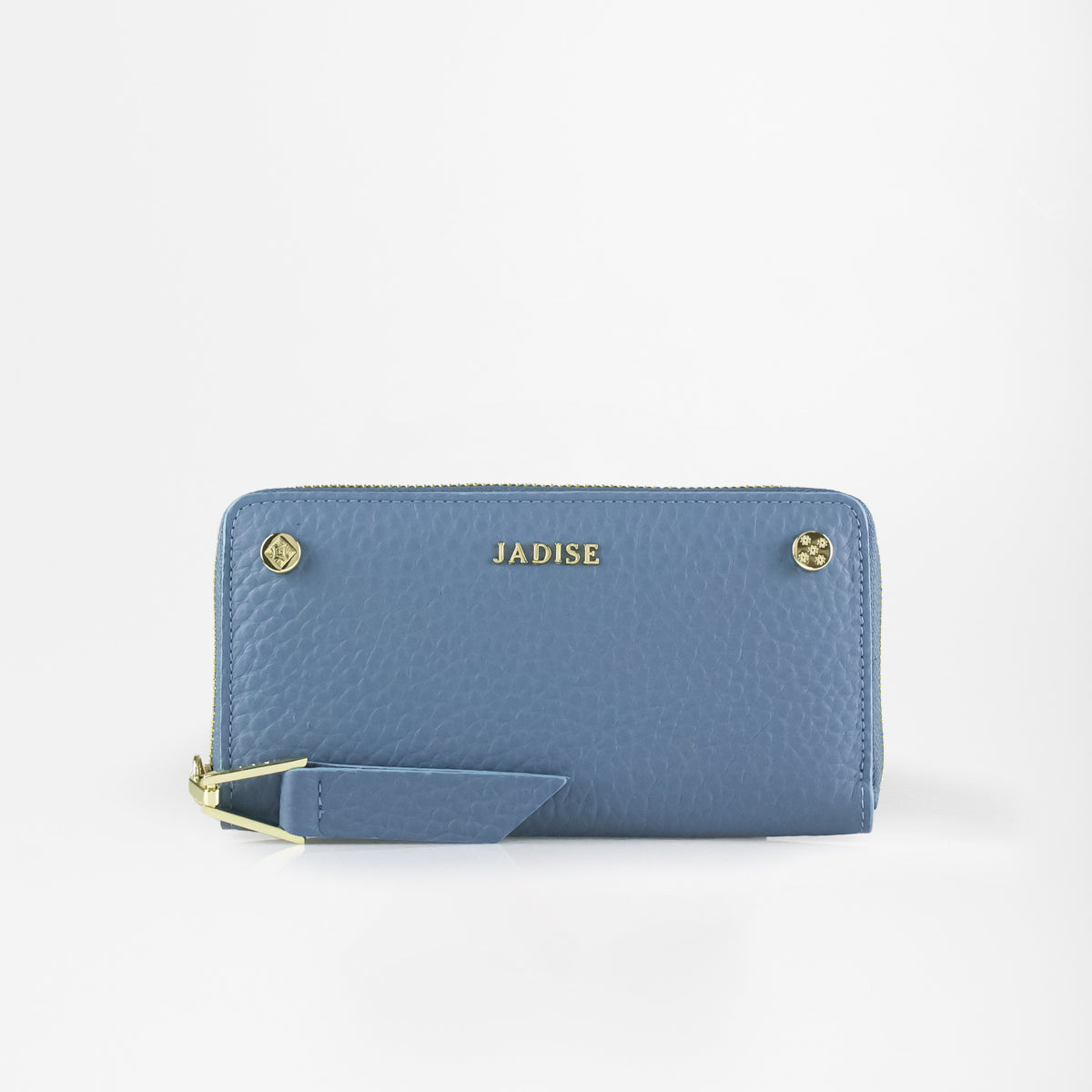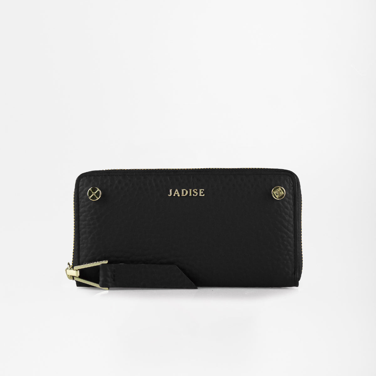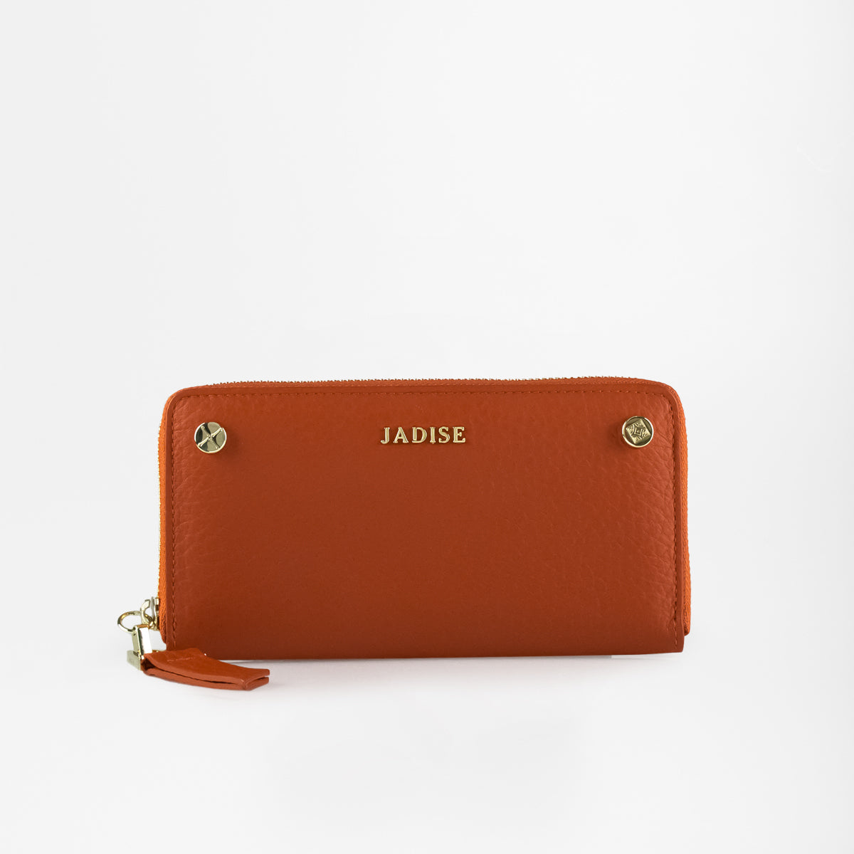 Portafoglio Jadise Studs comodo e capiente, realizzato in pelle dollaro grana grossa morbida al tatto, decorato con borchie iconiche Jadise con incise le maioliche siciliane e logo Jadise. Chiusura zip around con tirate in pelle lungo ed accessorio longato Jadise, all'interno troviamo otto scomparti per carte di credito, due scomparti per banconote, due tasche interne laterali, tasca centrale zip portamonete.